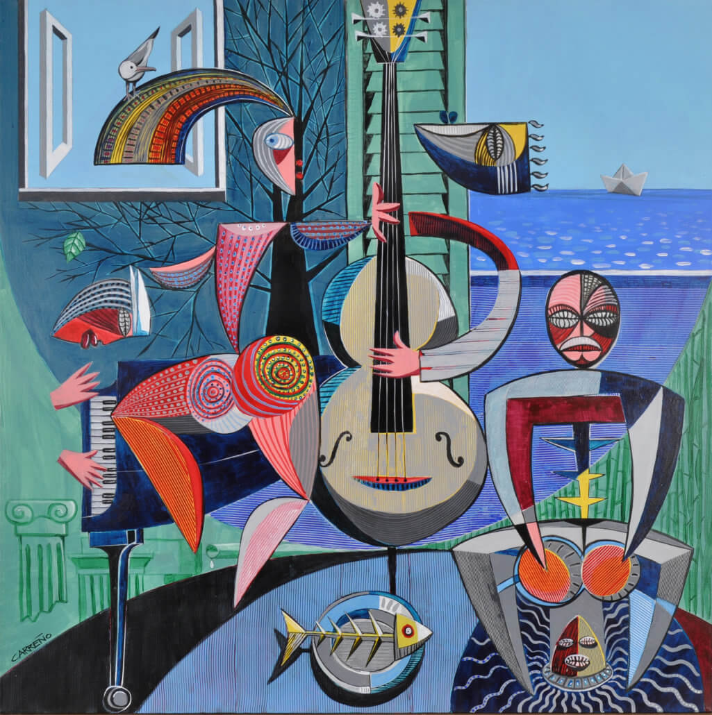 Alejandro Carreño: August 25 – September 14, 2018 – New acrylic on canvas paintings inspired by his music interests, his Cuban roots, and his annual visits to the colorful and texture rich Caribbean islands.