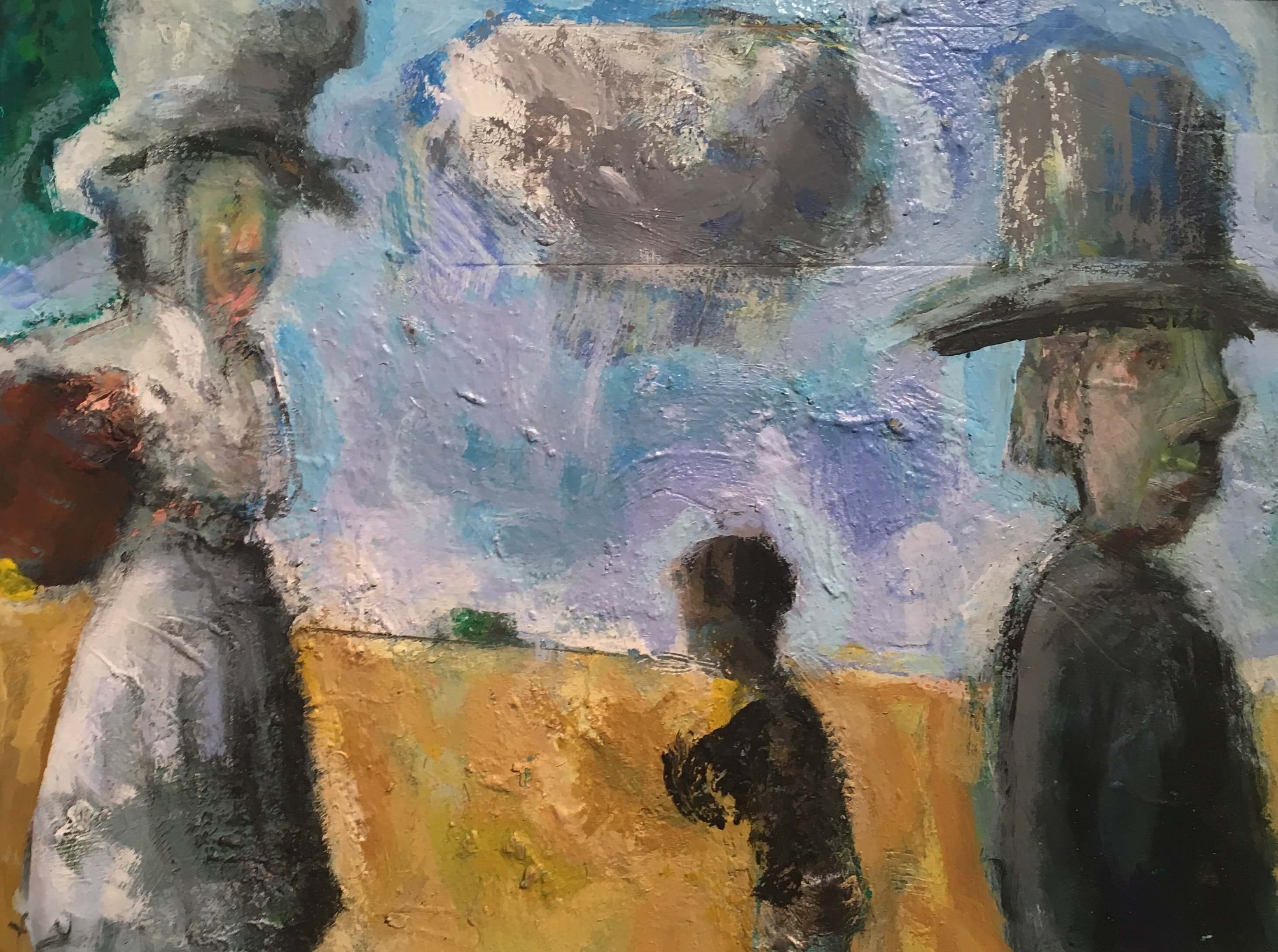 Billy Hoff: August 25 – September 14, 2018 – New oil paintings of imaginary landscapes and figures, with their distinctive hats and period-like attire.