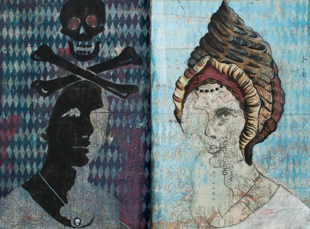 Jennifer Joanou presents her newest project, School of the Sea, a multipage, mixed media, hand painted and collaged illustrated journal, with hand embroidered detail, bound in a leather cover.