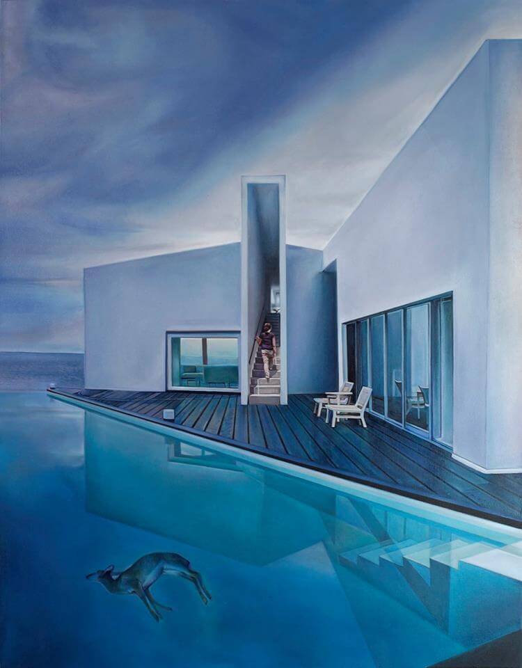 The paintings portray a more flawed and vulnerable experience into these projections of the American dream, shifting the focus from symbols of wealth and prestige to more human questions about balance, control, and fulfillment.